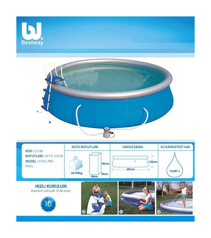 La piscina Bestway Fast Set ha capacità d?acqua al 80% per 13807 litri.