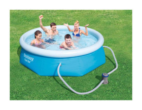 Piscina Fuori terra Bestway modello 57265 Autoportante con Bordo ad Anello Gonfiabile. La piscina è dotata di Valvole per Svuotamento facile. Materiale: PVC triplice strato. Capacità in Litri 2.300. Dimensioni: cm ø 244x66h. Predisposta per Pompa filtro da 1.249 lt/h