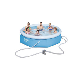 L'assemblaggio è rapido e semplice ? basta scegliere una superficie piana, gonfiare l'anello superiore, riempire d'acqua la piscina...e il gioco è fatto! Per assemblare una piscina Fast Set di Bestway non occorrono attrezzi!
