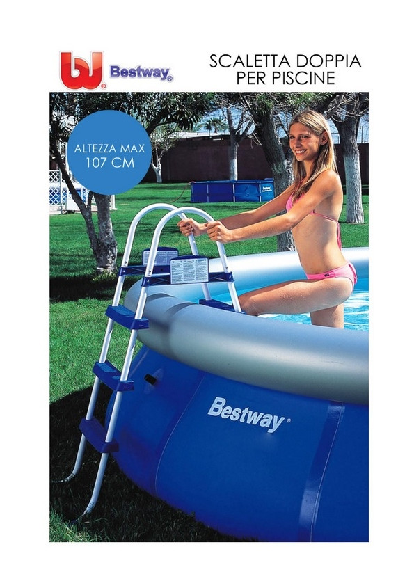 SCALETTA PER PISCINA H 107 CM BESTWAY BESTWAY CODICE 58044 Scaletta Bestway per piscina h. cm.107 piattaforma non inclusa Telaio in metallo galvanizzato antiruggine