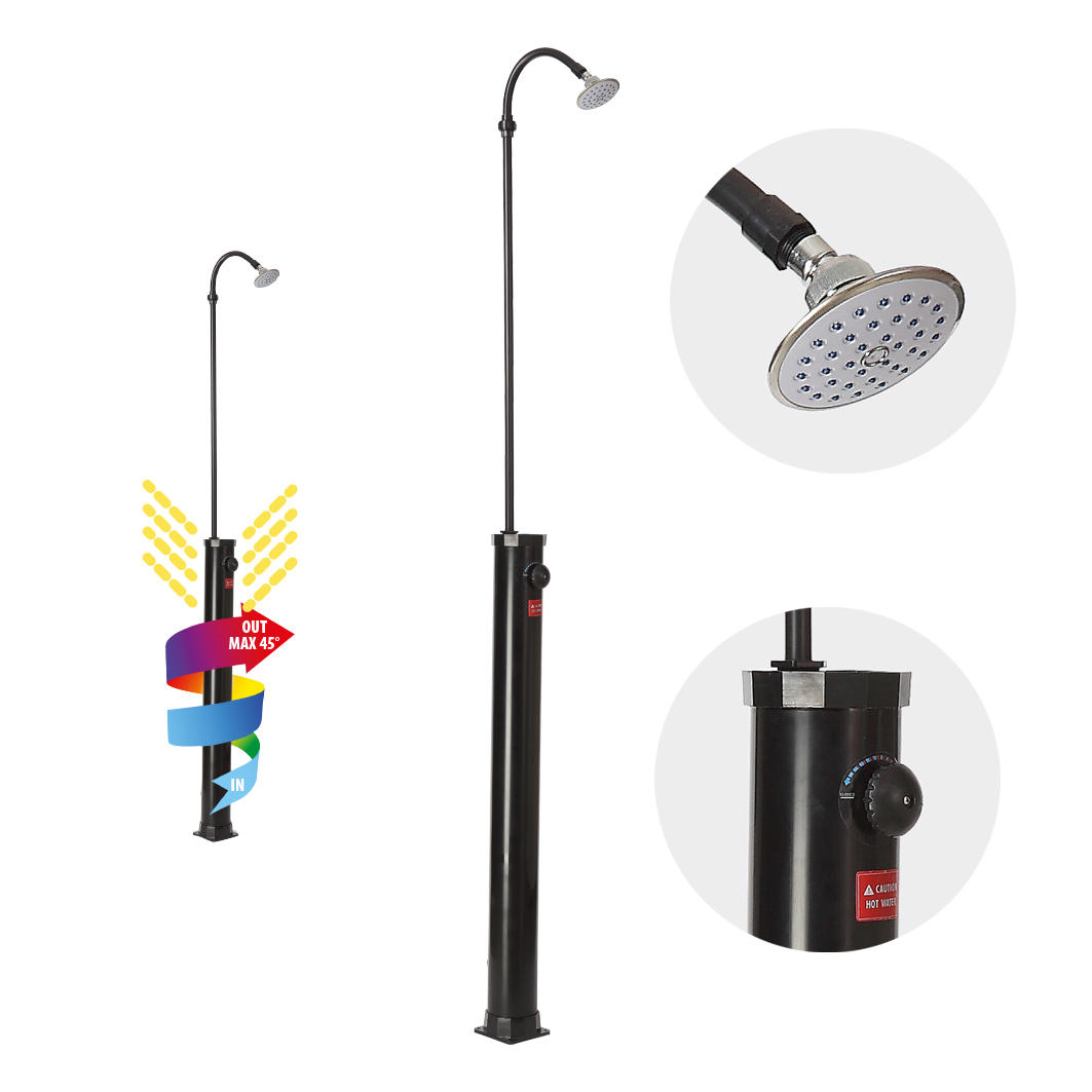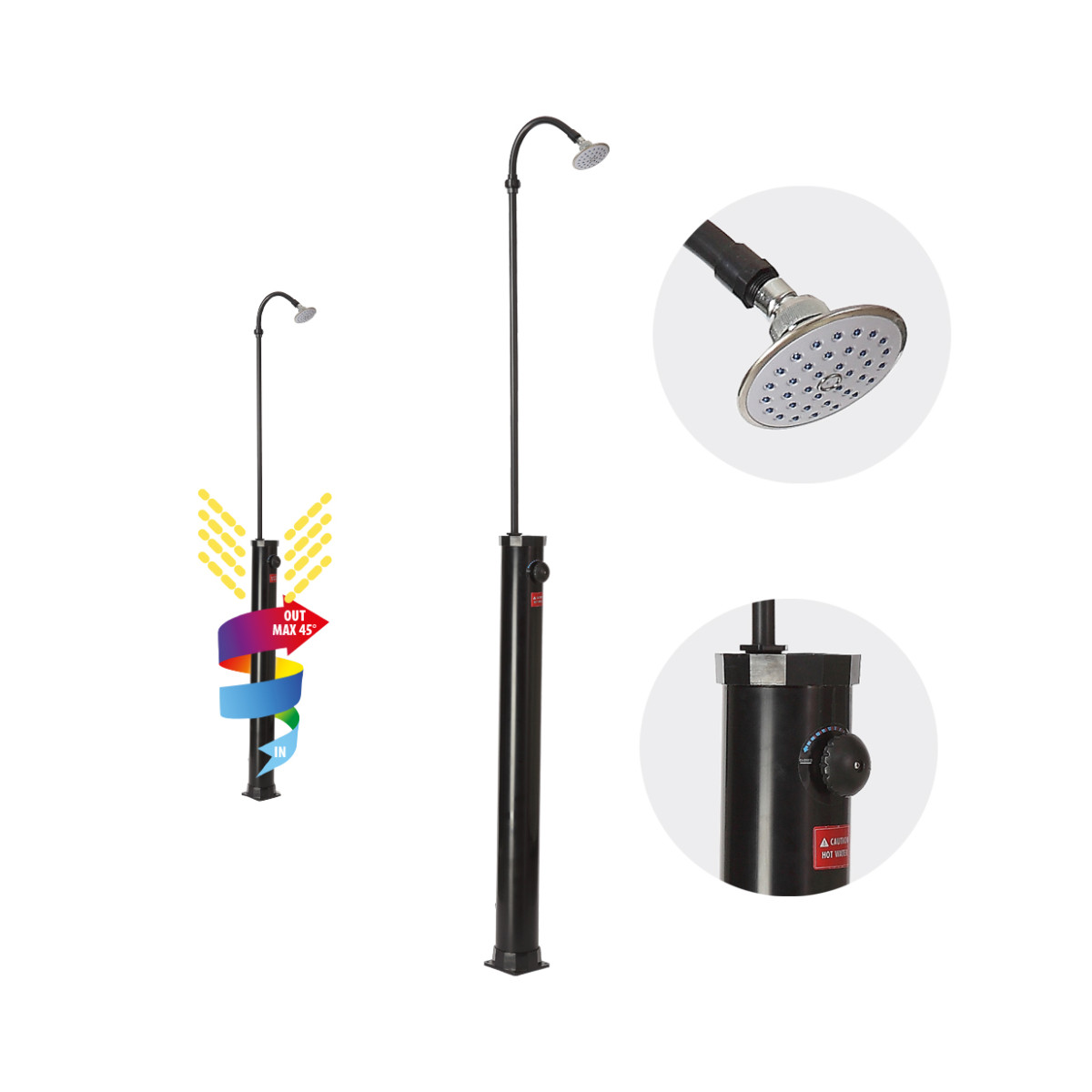 • grazie ai raggi solari, l'acqua raccolta nel serbatoio si riscalda. Aperto il miscelatore l'acqua uscirà dal soffione alla temperatura desiderata