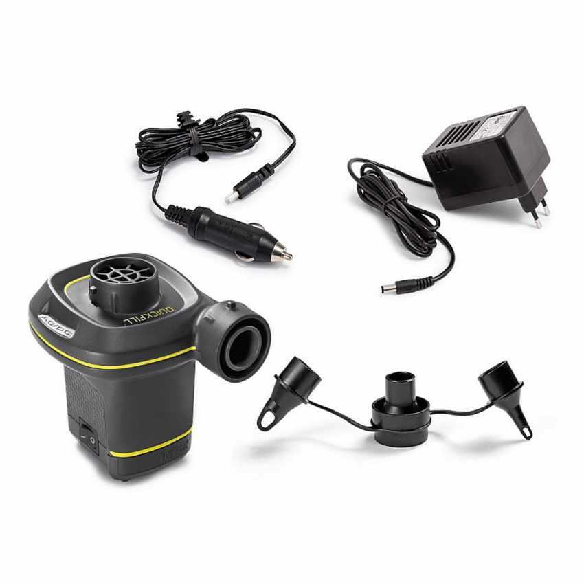 Il compressore elettrico portatile Quick-Fill 66634 della Intex è la soluzione ideale per gonfiare facilmente piscine, materassi o materassini ad aria, gommoni e molti altri prodotti gonfiabili. Il compressore è facile da trasportare in spiaggia. Il compressore elettrico Quick-Fill della Intex ha una funzione di gonfiaggio e sgonfiaggio, in modo che il prodotto non venga solo pompato rapidamente, ma possa anche essere facilmente sgonfiato dopo l'uso. Il compressore della Intex viene fornito con 2 adattatori. Con la spina normale, è possibile collegare la pompa alla presa di corrente (220-240 V ~) e con l'adattatore da 12 volt è possibile collegare la pompa alla propria auto o al camper (tramite l'accendisigari). L'elettropompa è quindi molto adatta sia per uso interno che esterno. Il compressore della Intex è estremamente utile, sia che vogliate gonfiare un materasso ad aria in casa o il gommone vicino all'acqua!