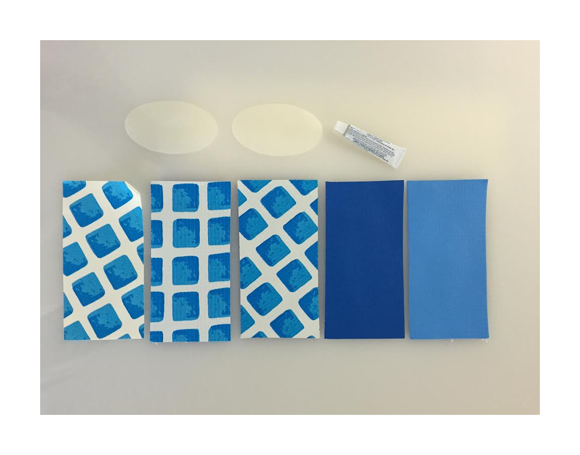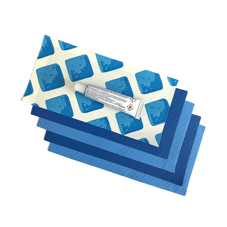 Kit di riparazione x piscine fuori terra composto da toppe in pvc in diverso tessuto e formato