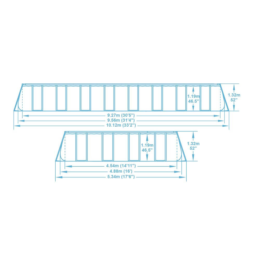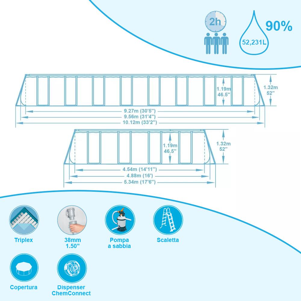 Dimensione piscina cm. 956 (L) x 488 (P) x 132 (A)