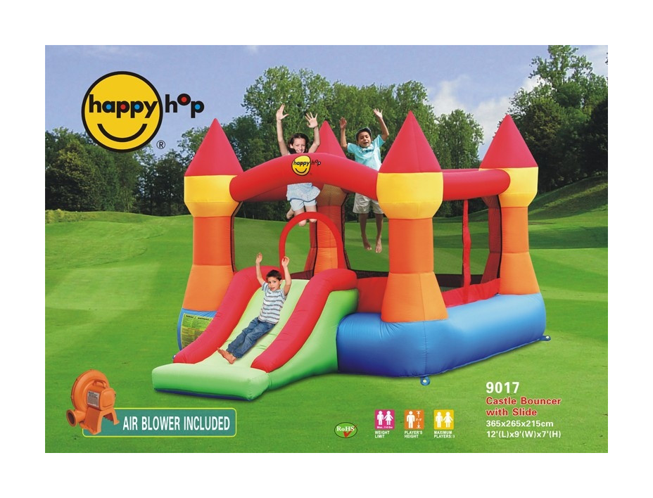 GIOSTRA GIOCO SALTI CASTELLO SALTERELLO GONFIABILE HAPPY HOP SCIVOLO RETI BIMBI 9017 CASTELLO - Gonfiabile Happy Hop con SALTERELLO e SCIVOLO. Pompa di Gonfiaggio INCLUSA