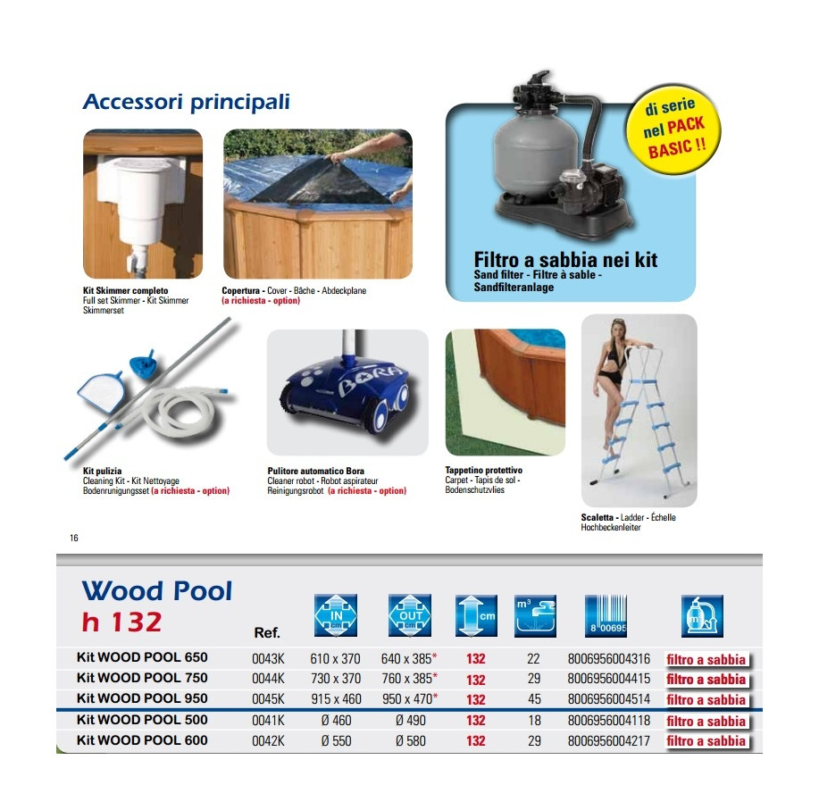 0041k PISCINA NEWPLAST KIT WOOD POOL 500 FILTRO A SABBIA H132