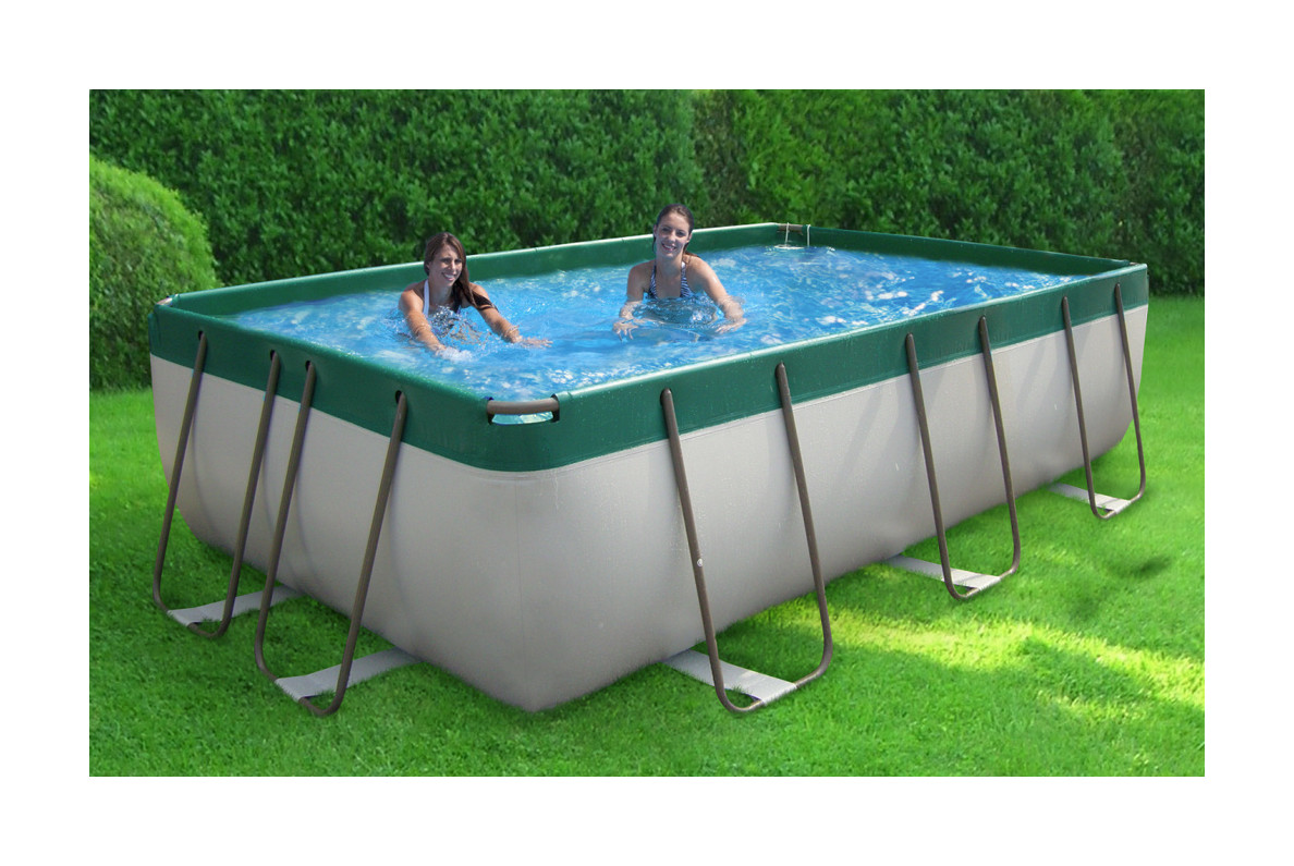 La piscina è interamente prodotta in Italia con materie prime di origine europea: dotata di una vasca in tessuto di poliestere bispalmato, di una struttura tubolare in acciaio trattato e verniciato per lunghe permanenze all'esterno e di tutti gli accessori principali.