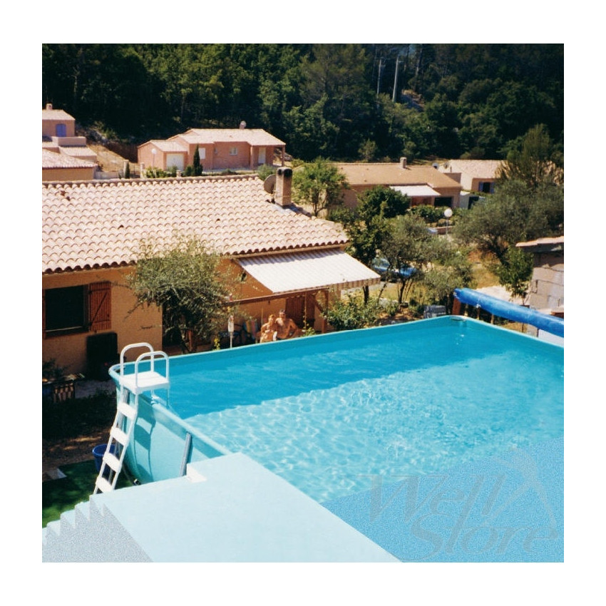 Supreme 800 è una piscina fuori terra Technypool di dimensioni cm 780 ? 390 ? 132 (altezza) e capacità 38mc. L?ingombro esterno è di cm 822 ? 436 ? 132 (altezza).