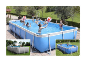 La piscina è rettangolare con dimensioni 4.60 ? 2.65 m ed un altezza di 1,25 m, per un volume complessivo di 14 mc di acqua. L?ingombro è di 5.10 ? 3.06 m.