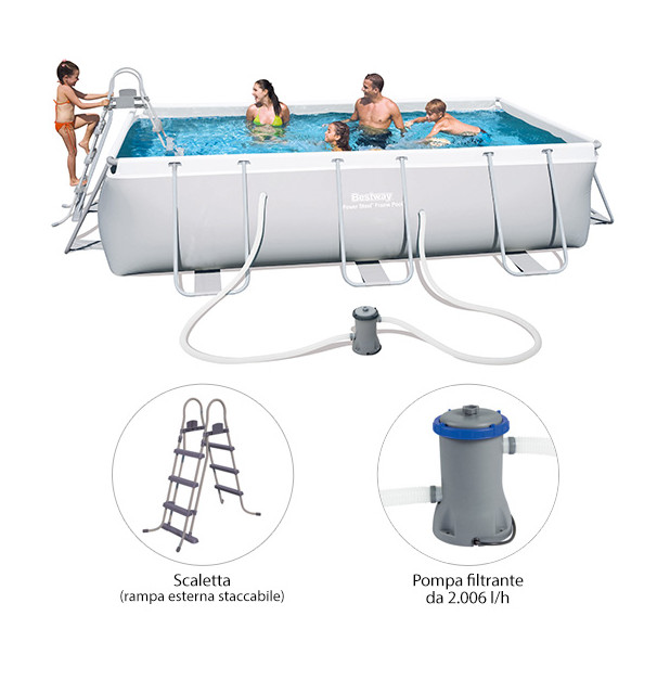 Frame Pool Rettangolare ? 56251 è una piscina rettangolare fuori terra di Bestway di dimensioni 404 X 201 X 100 cm. L?ideale per il divertimento di tutta la famiglia.