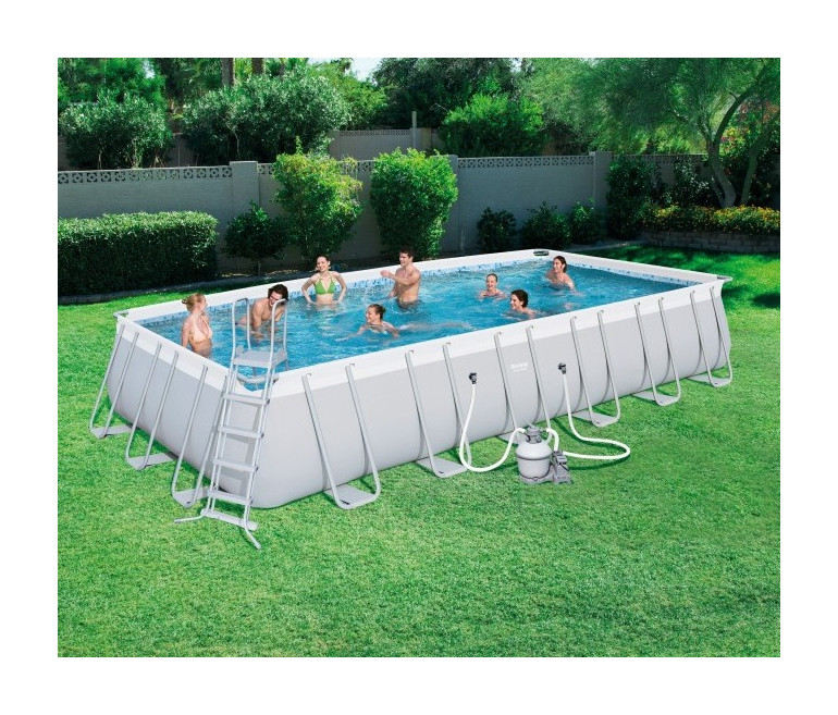 Piscina Fuori terra Bestway modello 56475 con Telaio Portante in Metallo antiruggine. La piscina è dotata di Valvole per Svuotamento facile. Materiale: PVC triplice strato. Capacità in Litri 30.045. Dimensioni: cm 732x366x132h. Dotata di Pompa a Sabbia Capacità 5.678 lt/h. La Confezione è comprensiva di: Telo di Copertura,e Scaletta.